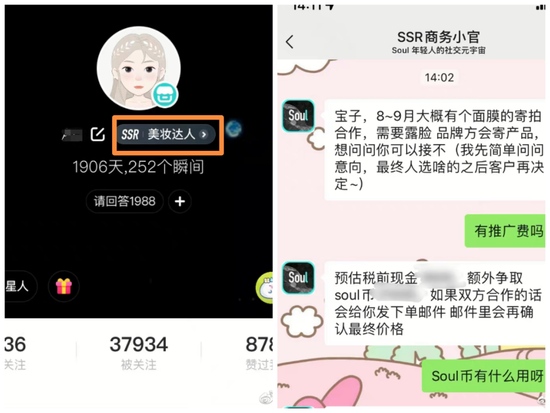 除此之外,Soul还看上了作为优质内容池提供者的SSR们的商业价值。