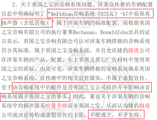 因为车辆宣传信息中说的是音响系统,音响系统中的配件是否是英国之宝公司提供的,都不影响该音响系统属于英国之宝的事实。。。