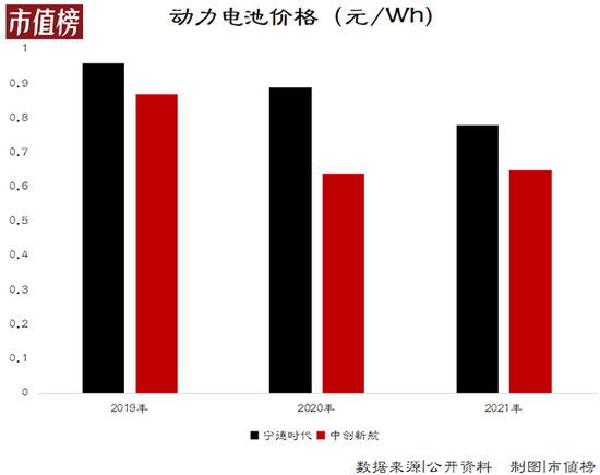这一点,招股书中的数据也可以佐证。2019年和2020年,中创新航动力电池的平均售价分别为0.87元/Wh和0.64元/Wh。