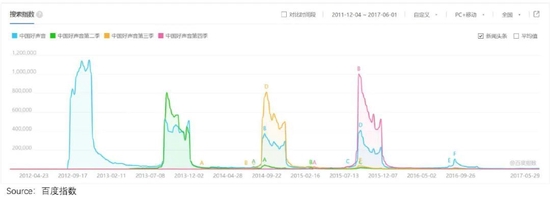 比如,《中国好声音》第四季由于周杰伦的加盟,一扫前两季热度逐渐下降的颓势,百度指数逆势高企。
