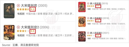 两个典型的案例是,电视剧《大宋提刑官》第一部,堪称封神之作;第二部剧情、立意平庸,口碑坍塌。