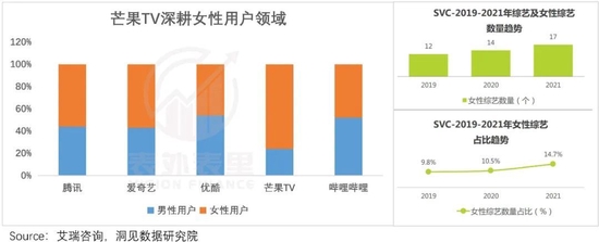 而不只单一节目,综艺整体的用户聚焦都在向女性倾斜。以综艺为主的芒果TV就不说了,用户近80%为女性;行业整体的女性向综艺数量,近年来也在持续上升。