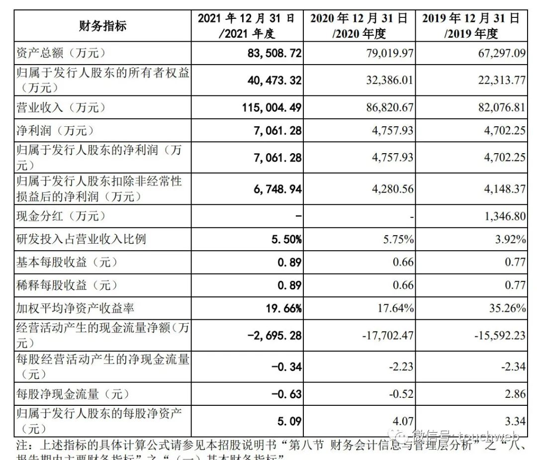 招股书显示,爱联科技2019年、2020年、2021年营收分别为8.2亿元、8.68亿元、11.5亿元;净利分别为4702万元、4757.9万元、7061.28万元;扣非后净利分别为4148.37万元、4280.56万元、6748.94万元。