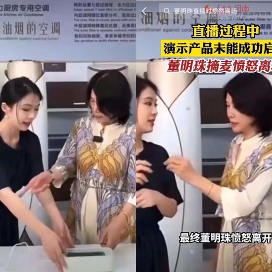 直播间里,工作人员尴尬又紧张,手忙脚乱地补救,一旁的董明珠表情严肃,把电源线丢向一旁,愤怒摘麦,转身离开直播间,留下两个主播面面相觑。这场直播后,和董明珠相关的#黑脸离场##愤怒离场#词条均登上了热搜。