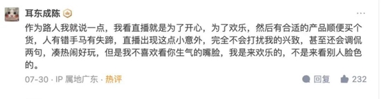 赞赏她的人说她是“性格直爽”“讲究原则、决不妥协”,不喜欢她的人认为董明珠“凶、发火、硬怼、手撕”。就比如直播间愤怒离场事件,有人支持董明珠,“让老板在这里等?让别人怎么想他们的产品”,有人称“窒息感很强了”,一位@耳东成陈的网友表示,“我看直播就是为了开心,为了欢乐,直播出现这点小意外,完全不会打扰我的兴致,但是我不喜欢看你生气的嘴脸,我是来欢乐的,不是来看别人脸色的。”