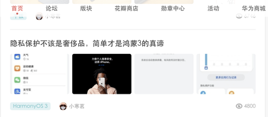 比如,花粉俱乐部一篇名为《隐私保护不该是奢侈品,简单才是鸿蒙3的真谛》的帖子,就收获了近5000次阅读,大部分网友在评论区都发表友好的评论。
