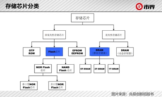 存储芯片可简要分为动态随机存取存储器(DRAM)和闪存(Flash)芯片,闪存又可分为NOR Flash、NAND Flash。国内大多选择应用更广泛、市场规模更大的DRAM产品。