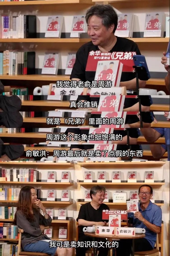 两个人一唱一和把直播间聊成了相声现场,这些语录被网友们发到微博、抖音,又掀起一波热度。虽然气氛轻松,但整个对谈还是很专业、很有深度的,比如在聊《兄弟》的时候用自身经历代入到当时的时代,让网友们更了解这本书的内容。