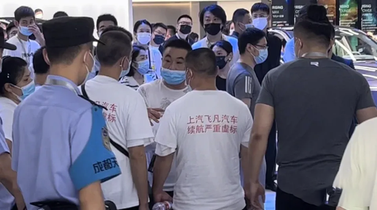 成都车展开幕后不久,飞凡汽车展台上就聚集了10多位身穿印有“上汽飞凡汽车续航严重虚标”文字衣服的车主,据相关媒体报道,这些车主的目的是向飞凡汽车官方维权,因为他们购买的飞凡车型不到一年,续航里程就打了对折。
