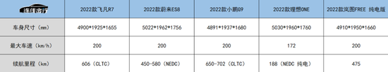 动力层面,与飞凡R7同级别的小鹏G9续航里程达到了702公里,比飞凡R7多了100公里左右;而在最大车速上,蔚来ES8、岚图FREE和小鹏G9都可以达到200km/h,与飞凡R7相等。