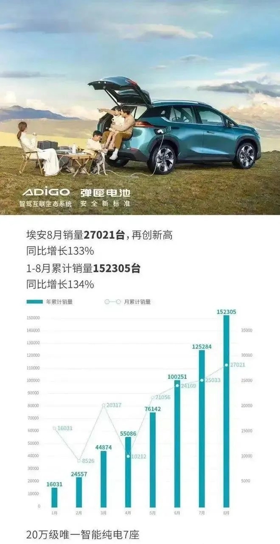 传统汽车品牌是一支不容忽视的力量。8月,广汽埃安交付量达27021辆,同比增长133%;1-8月累计销量达152305辆,同比增长134%。吉利汽车旗下极氪8月共交付新车7166辆,环比增长42.69%。长安、华为、宁德时代联合打造的阿维塔自8月8日上市至8月30日,订单已突破2万。