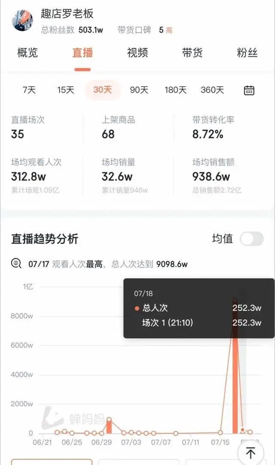 “撒币”营销确实让趣店收获颇丰。据了解,7月17日,抖音“趣店罗老板”账号涨粉458万,“趣店罗老板”直播间总观看人次达9098.6万,累计点赞量超6亿,直播单场累计销售额达2.5亿元,位居717直播销售额首位。
