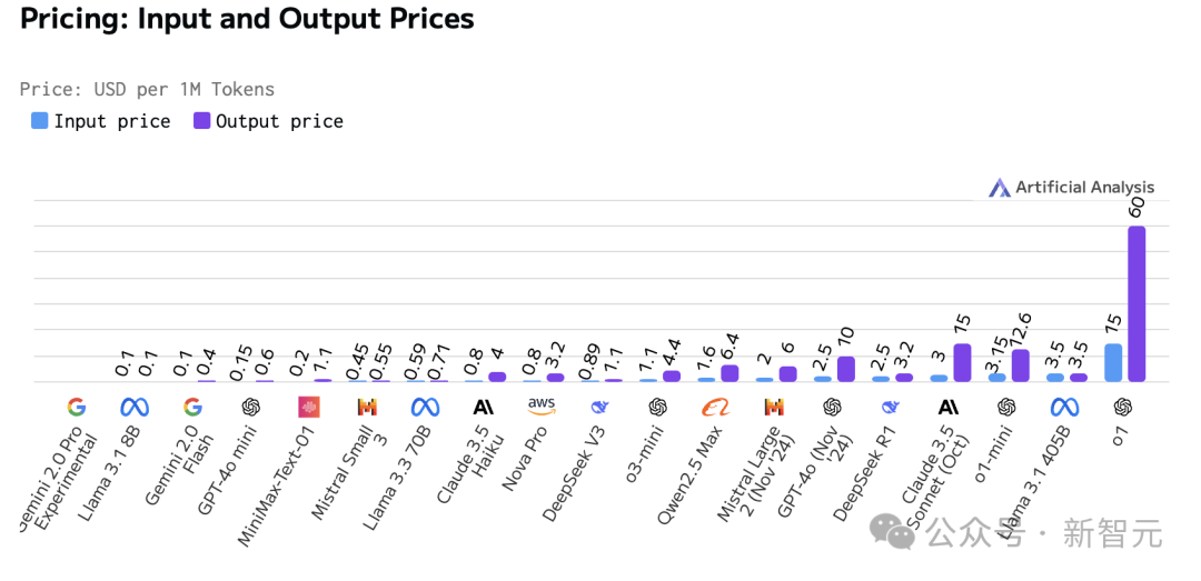 Gemini 和 DeepSeek 打起了价格战:每百万 token 的输入 / 输出价格,Gemini 2.0 Flash 为 0.1/0.4 美元,DeepSeek-V3 为 0.8/3.2 美元。
