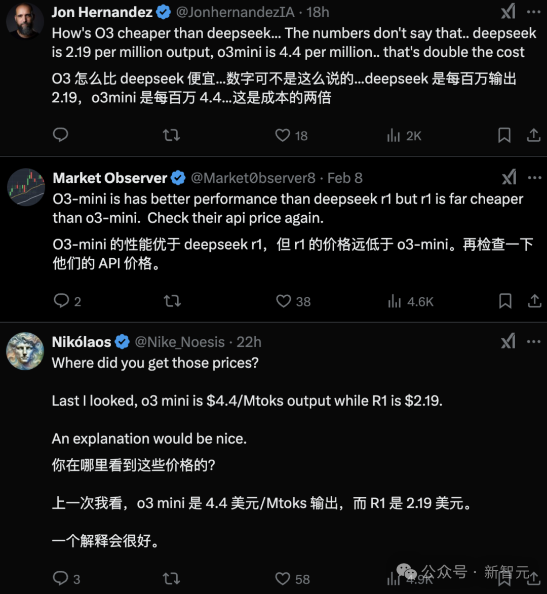 与 DeepSeek R1 相比,o3-mini 的效果相当,但更便宜