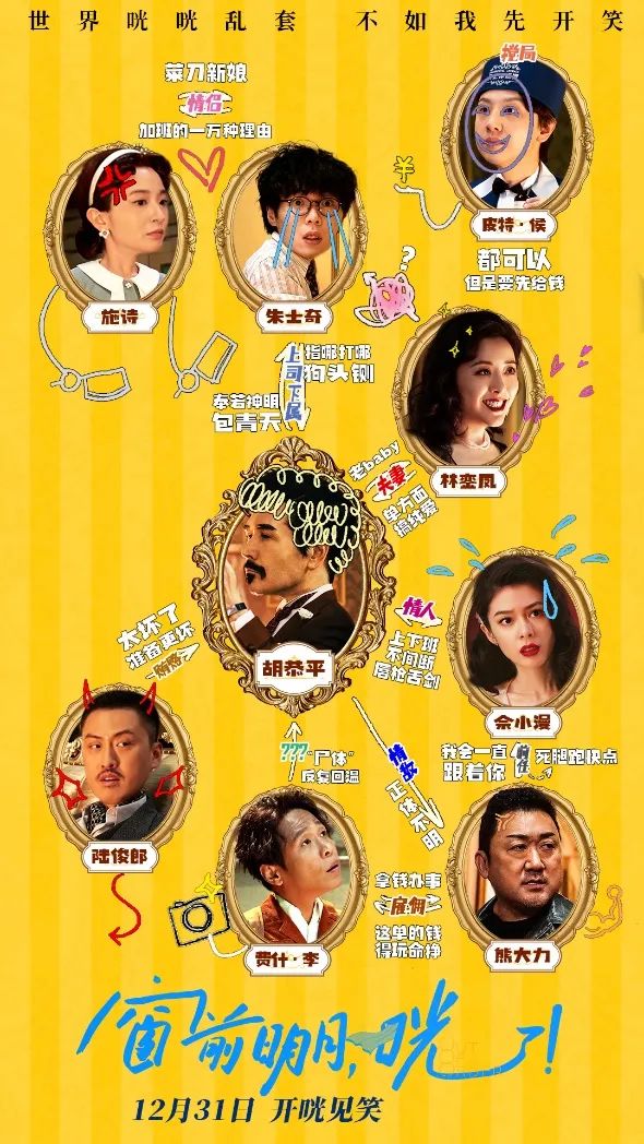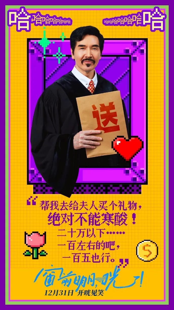 这不,离《封神2》上映尚有一个月,“殷寿”给了观众一个意外惊喜——费翔主演的一部喜剧先行上映贺新年了——《窗前明月,咣!》,听名字就是个喜剧,而且有开心麻花谐音梗片名的传统,果不其然,导演魏泇丞就是开心麻花的成员,片中有不少开心麻花演员助阵。在电影版之前,开心麻花曾经将这个故事搬上话剧舞台,起名叫《窗前不止明月光》,多年来已经献演了1000多场。