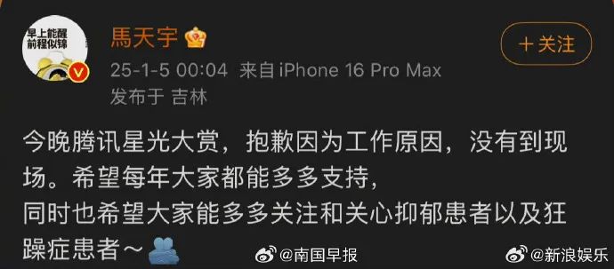 ▲图源马天宇工作室微博。当天凌晨,