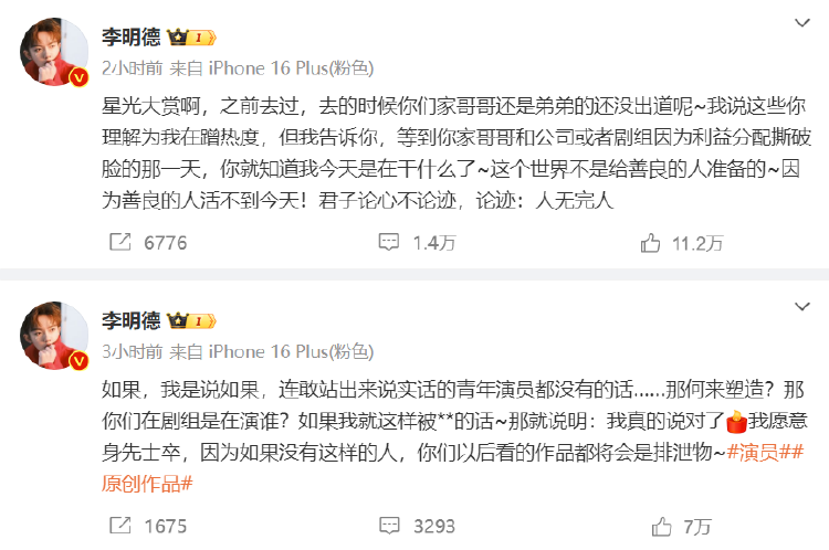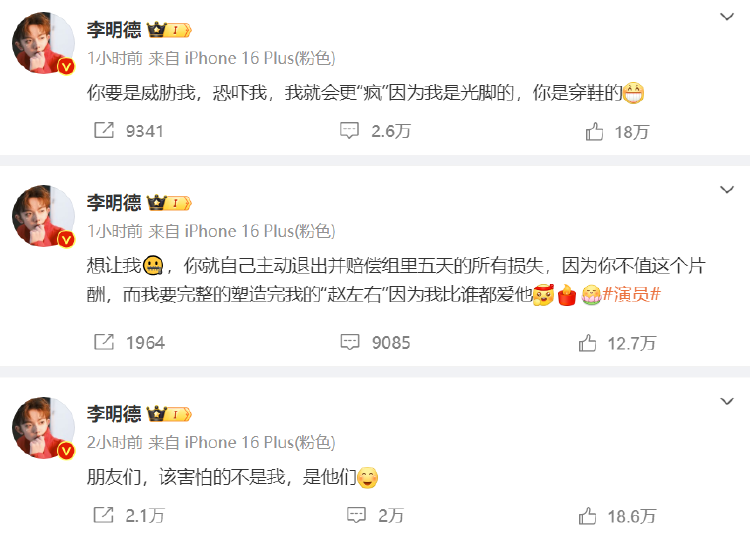 男演员李明德发文称,