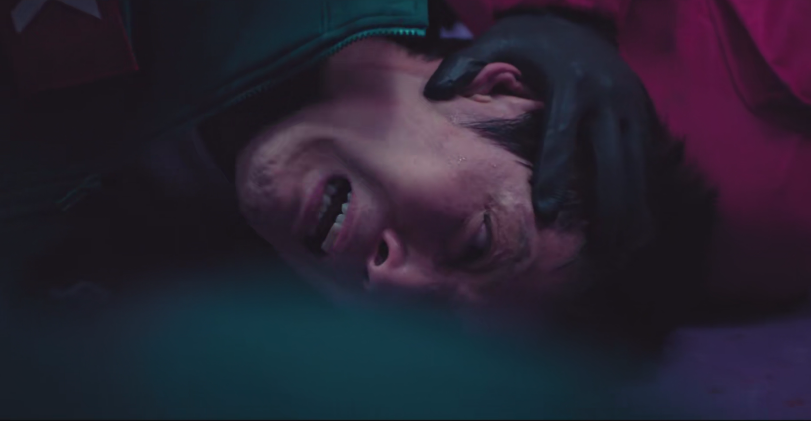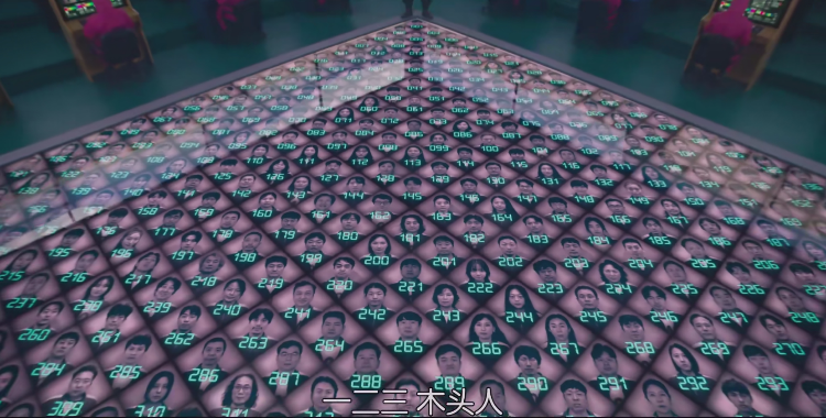 这是第一季的大赢家,456号,一头红发出场,用刀片抠掉了植入自己耳后的不明物体。