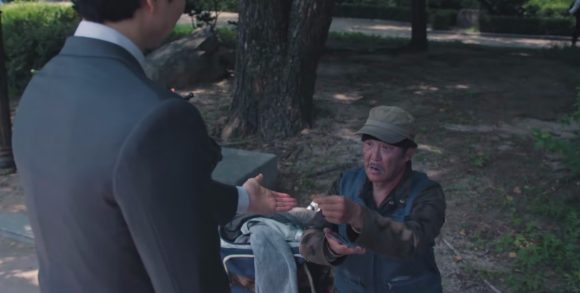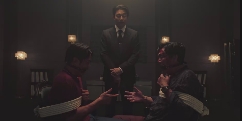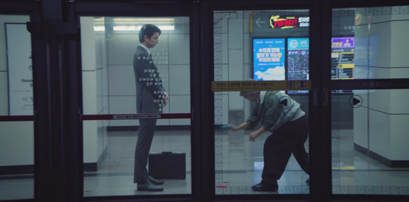 当然也少不了还有西装笔挺的孔刘,在地铁站里物色“绝望的人们”来参赛,耳光扇得啪啪响。