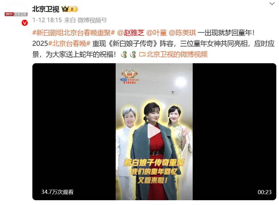 对此,大批网友直呼:“‘白娘子’赵雅芝蛇年春晚好忙!”