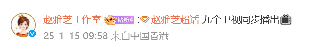 此外,赵雅芝工作室还补充:“九个卫视同步播出。”