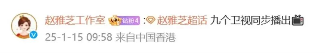 随后,赵雅芝工作室官方微博也官宣:将有九个卫视同步播出。