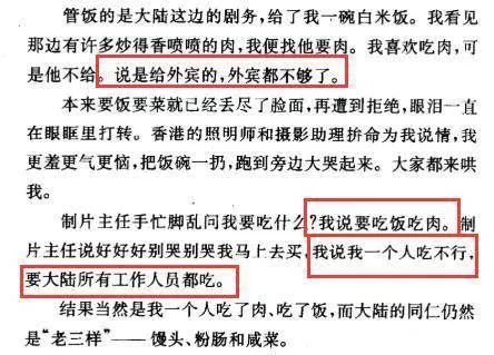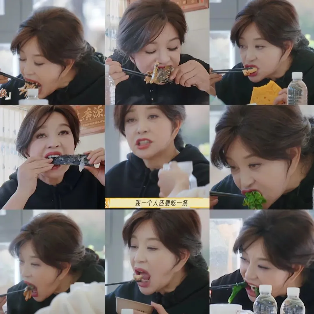 有次她终忍不住哭起来,吓得众人忙问发生什么事。她说自己想吃肉与米饭。她这么一闹,制片主任马上答应给她肉吃。她又当即表示:我要大家都吃肉。而这跟综艺里吃鱼的这一段,又是多么相像。