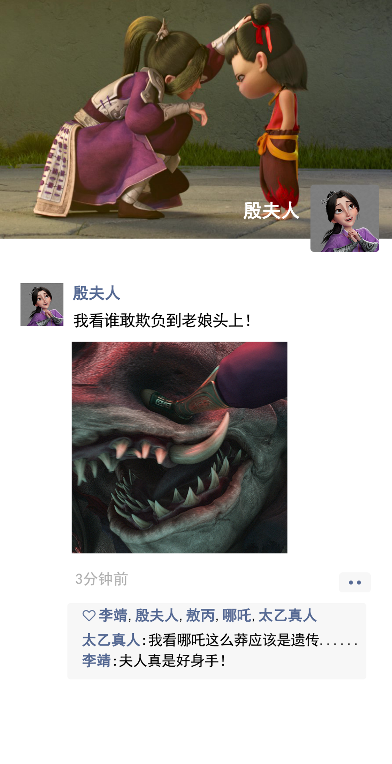 老熟人小哪吒自然是绝对的主角,一出场,一段数来宝,一段踢毽子,就把人物逻辑给捡回来了。这藕饼CP也有多个名场面,截图下来都能当壁纸那种,磕CP的放心冲。