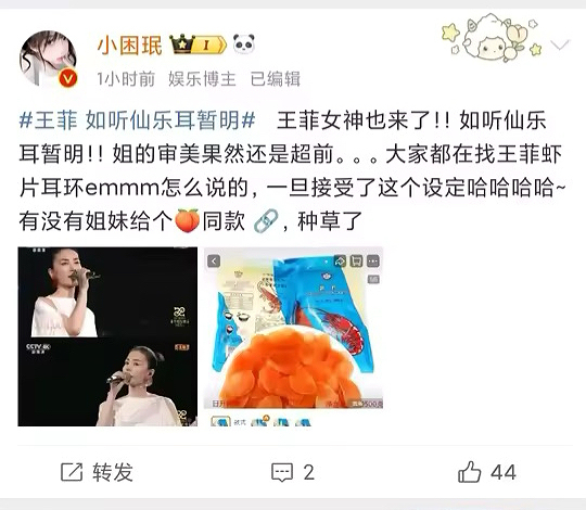 比如,天后王菲的“虾片耳环”,让不少网友惊呼“有些人就是与生俱来的时尚感”,戴个塑料都好看。