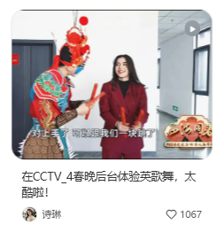 在她的个人账号中,她曾放出参加央视春晚并体验英歌舞的视频。