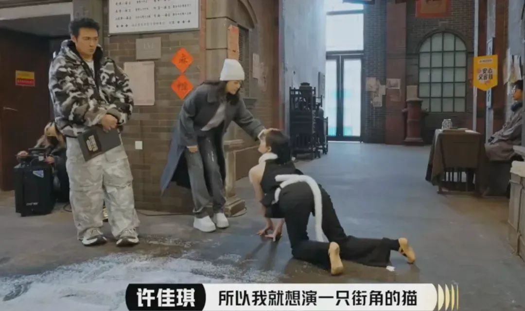 比如爱豆出身的许佳琪在节目里演了一只猫,你没听错,不是什么猫妖、就是猫,四肢着地翻滚爬行。