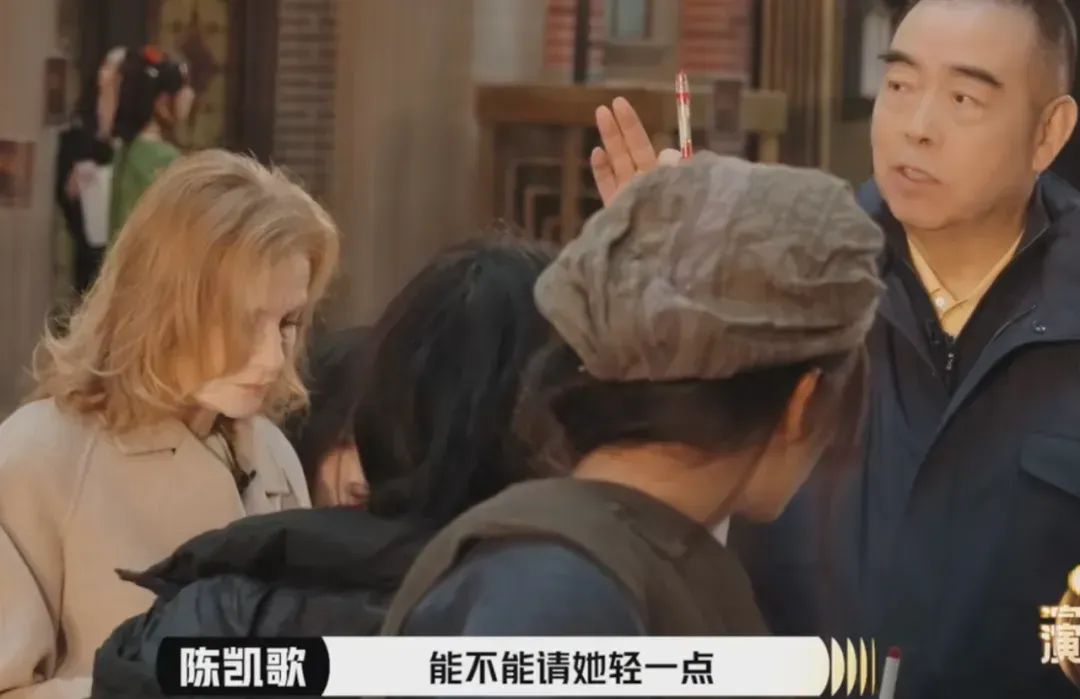 隔壁片场的陈凯歌听到远方传来这毁灭世界的高音,礼貌询问节目组“能不能请她轻一点”。