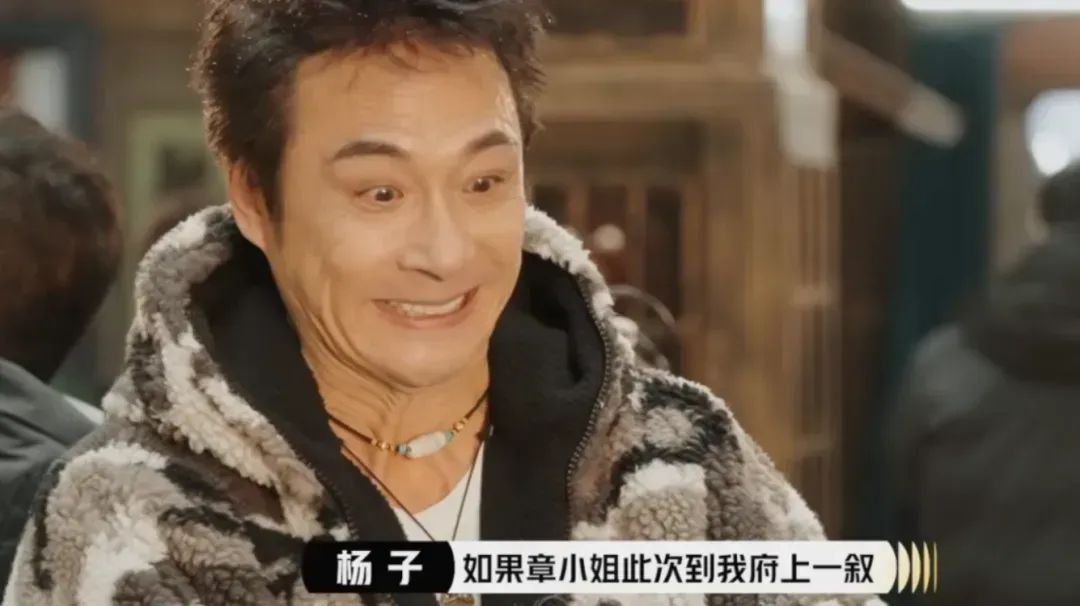 章子怡听了几句油腻台词后就想离去,但杨子像路边推销健身房办卡的销售一般紧追不舍,章子怡已面露难色。