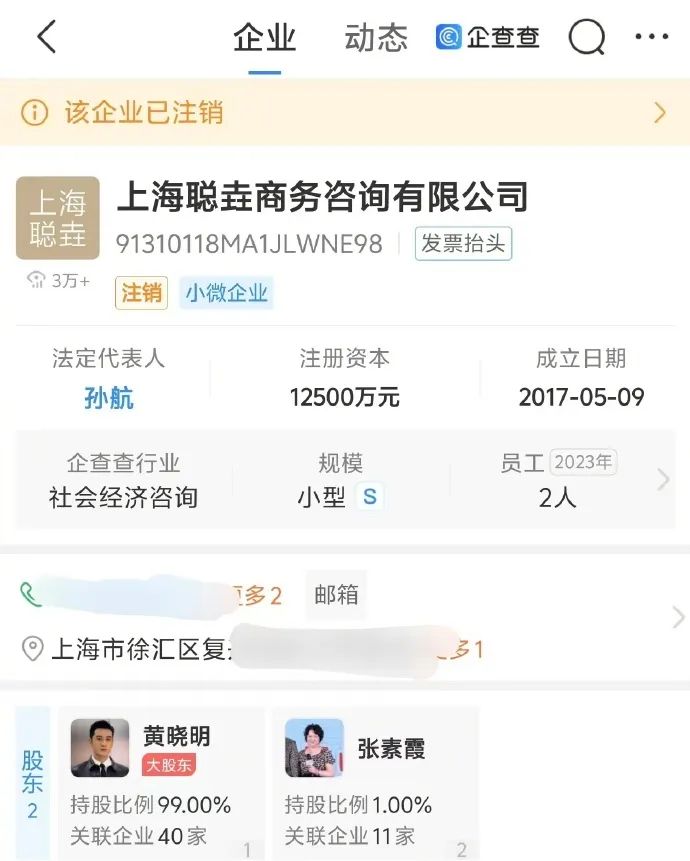 企查查APP显示,近日,上海聪垚商务咨询有限公司经营状态从“存续”变更为“注销”。