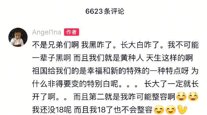 有网友表示甜馨比小时候白了很多,当年的小孩转眼间就长大了。对于“变白”的争议,甜馨在评论区回应“长大了就长开了”,并且否认整容。