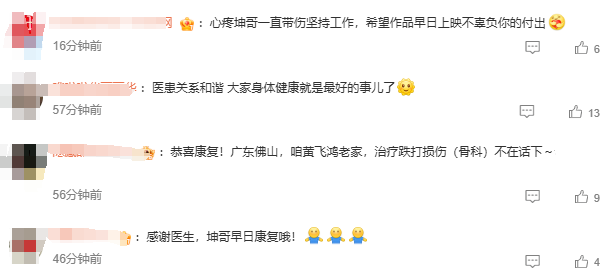 不少网友纷纷在评论区留言:“坤哥(陈坤)注意身体”“感谢医生,坤哥早日康复”“医患关系和谐,大家身体健康就是最好的事了。”
