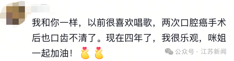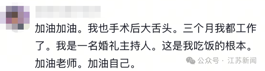 “还有点小激动,但是说话不是太流利,会大舌头,会流口水,但已经很开心了,看到大家的鼓励很感动,非常感谢大家,手术前要切舌头,我特别崩溃,完全不知道以后会怎样。好在恢复得不错,大家别担心,我会继续加油的!”