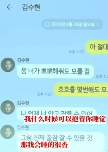 遗属公开了金秀贤与金赛纶2016年6月24日、25日的聊天内容。聊天截图显示,金秀贤发来金赛纶小时候的照片,并说道“你很可爱”。此外,2016年6月26日,金秀贤发短信说:“什么时候才能抱着你睡着呢?我觉得我会睡得很好。”并补充说:“大概需要一年的时间?三年?”