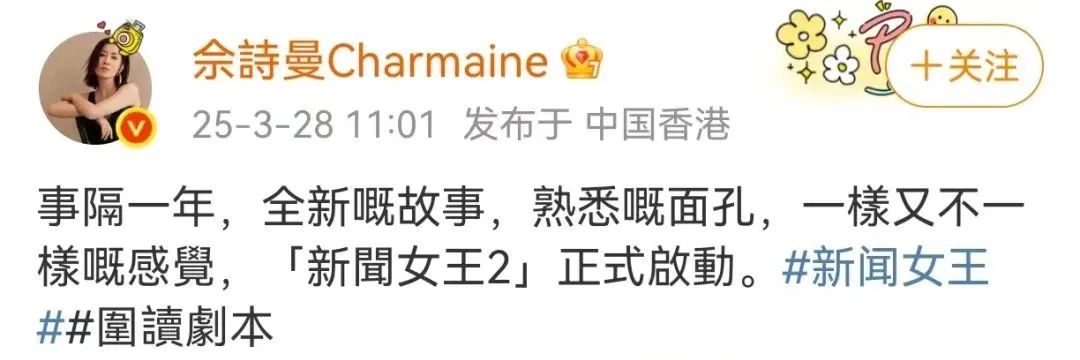 3月28日,演员佘诗曼透露,《新闻女王2》正式启动,目前已进入围读剧本阶段。佘诗曼表示:“时隔一年,全新的故事,熟悉的面孔,一样又不一样的感觉。”