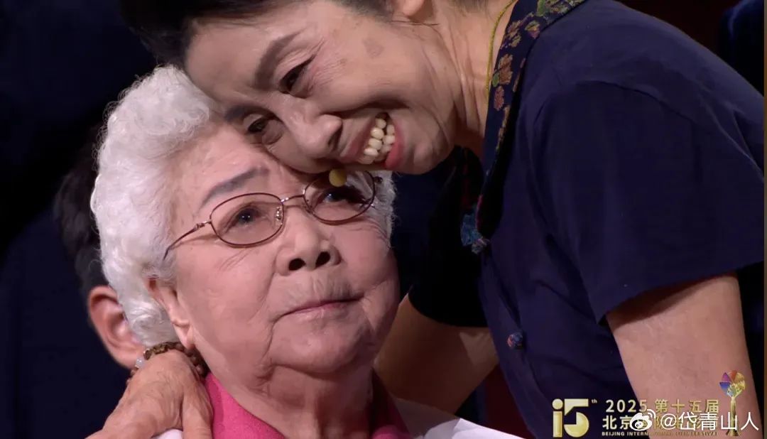 田华坐着轮椅来到台上,组委会也安排了惊喜,在《党的女儿》中饰演李玉梅女儿小妞的沈竞华突然出现在舞台上。看到“女儿”的出现,田华激动地呼唤道:“小妞,小妞,我看见我的女儿了。”而沈竞华也哭着对田华说,“很想您。”田华安慰她,“小妞,咱们不哭,要听妈妈的话。”