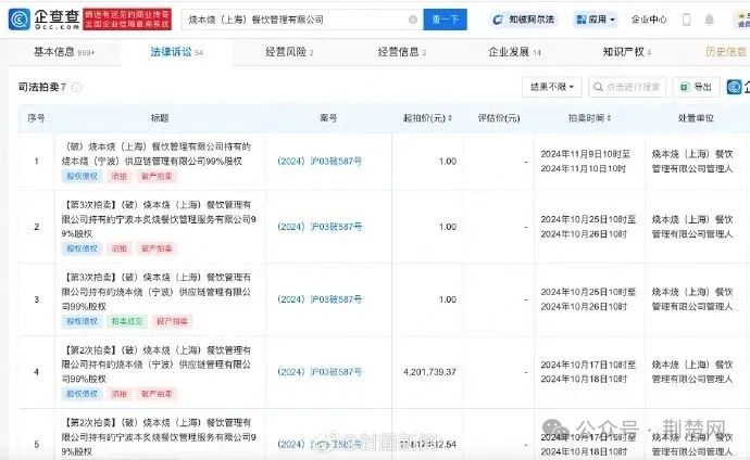 该公司名下关联多起破产拍卖信息,并已多次被限制高消费。据悉,演员张翰曾为烧本烧品牌“火星烤肉主理人”,并多次出镜宣传。