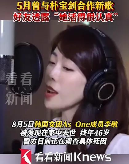 8月5日,韩国歌手李敏被发现在家中去世,终年46岁,警方目前正在调查具体死因。