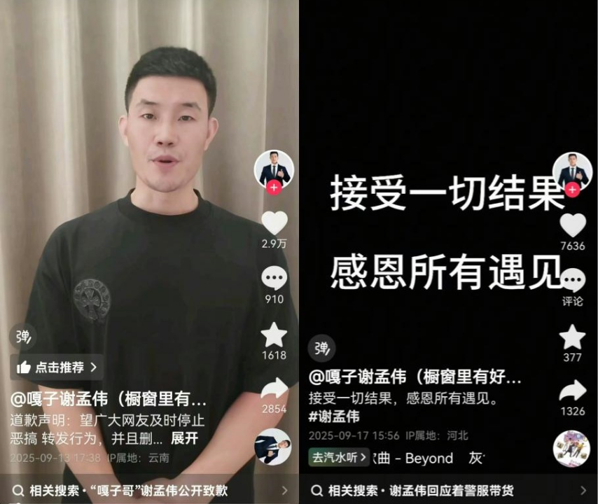 谢孟伟9月13日与9月17日在社交平台发布的视频截图。