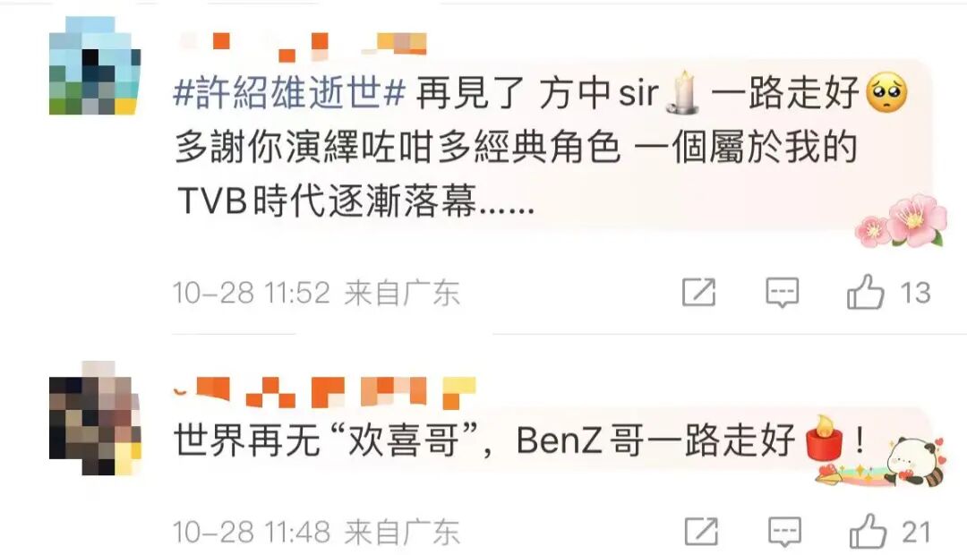 今天上午,@TVB官方微博 发文悼念许绍雄:青山远行,艺影长存。