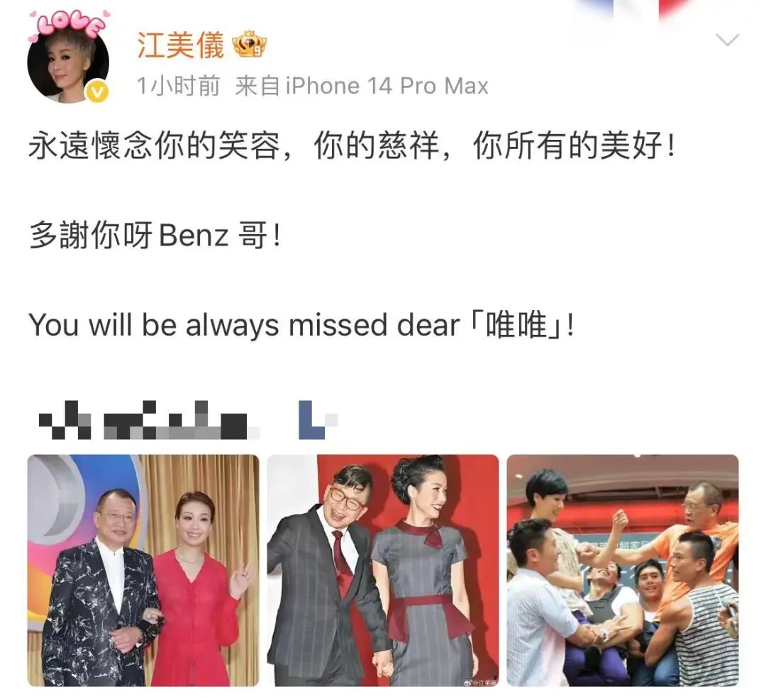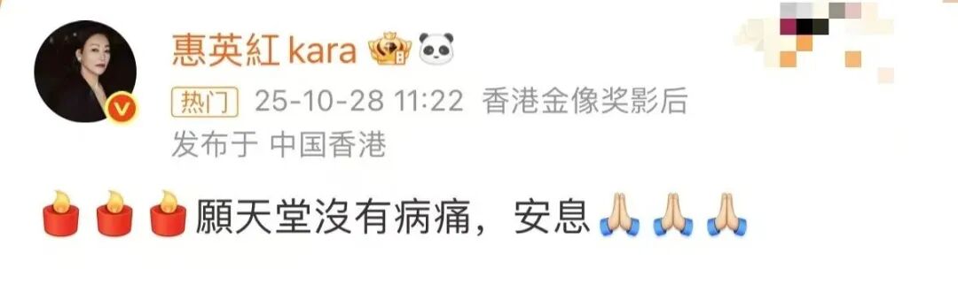 惠英红、欧阳震华、江美仪等演员发文悼念。