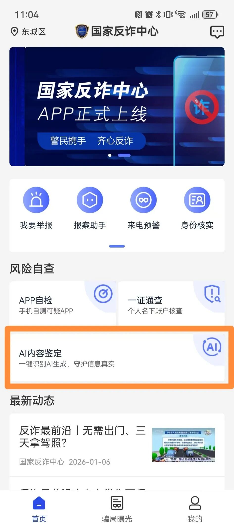 4. 用好“照妖镜”。新版国家反诈中心APP增加了“AI内容鉴定”功能,可上传可疑视频/音频进行鉴别。