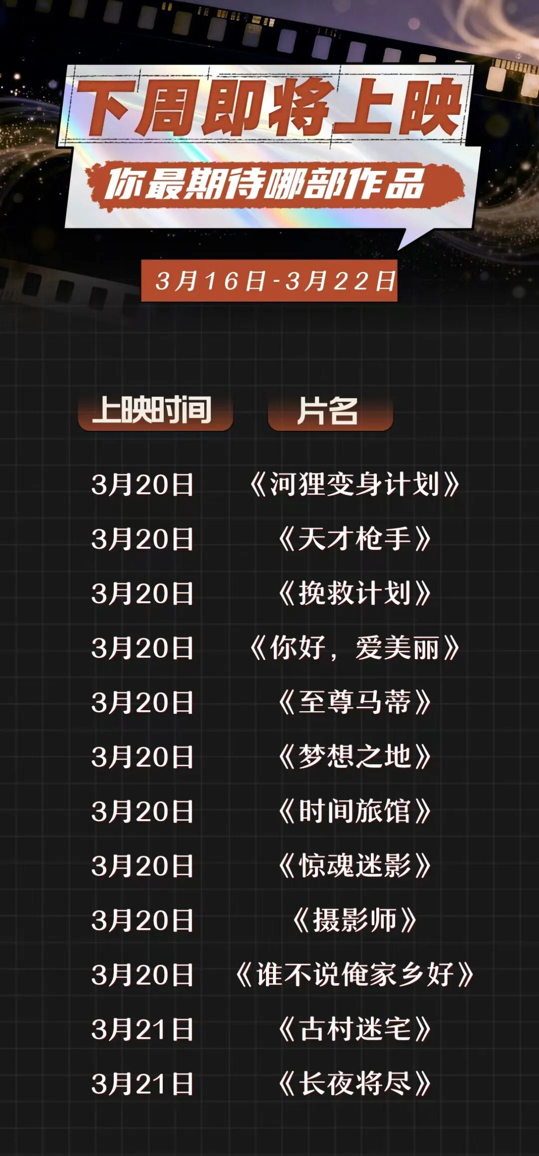 下周上新片单