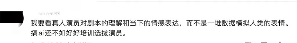 然而,消息一出,不少网友直言,根本不想看AI演电视剧,觉得 “假人感太重、没有灵气”。