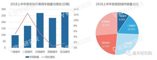 值得注意的是,2018上半年四五线城市的销量占比高达48.56%,是中国乘用车市场的绝对主体。