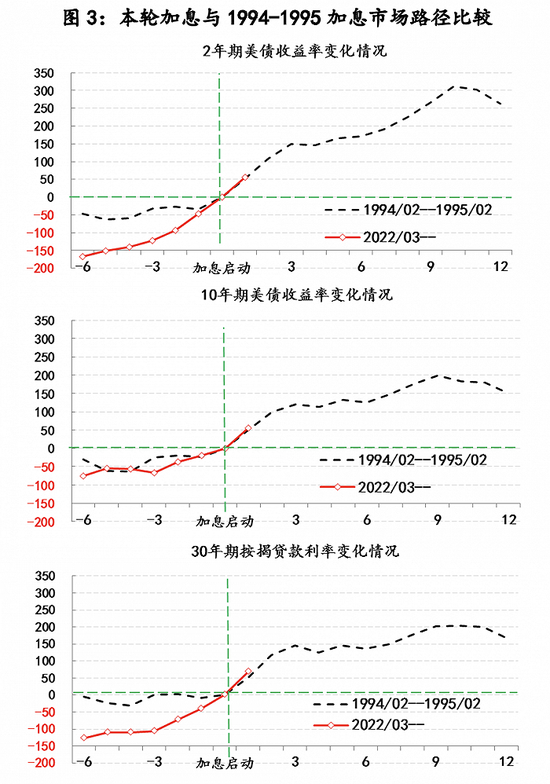 就市场对美联储政策预调的反应而言,市场确实已经确认了美联储扭转通胀的决心,而且实际的市场预期路径也与1994-1995年加息最为吻合。